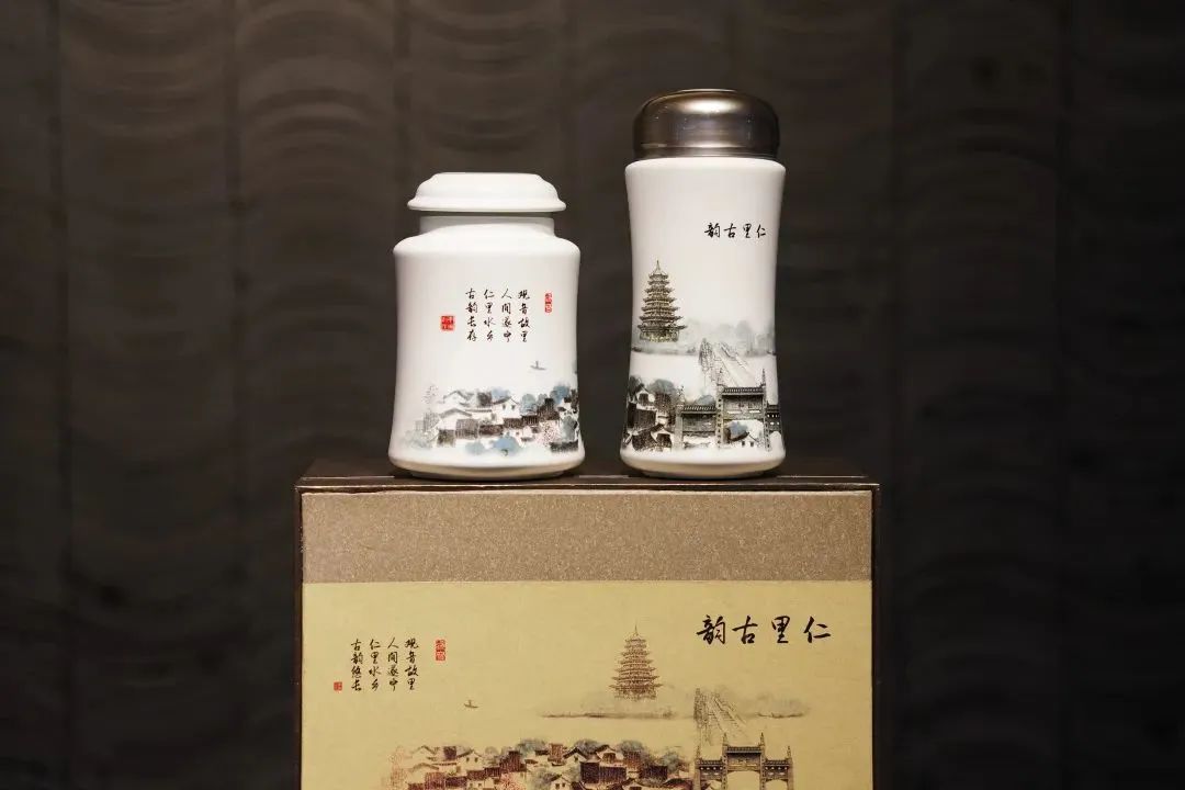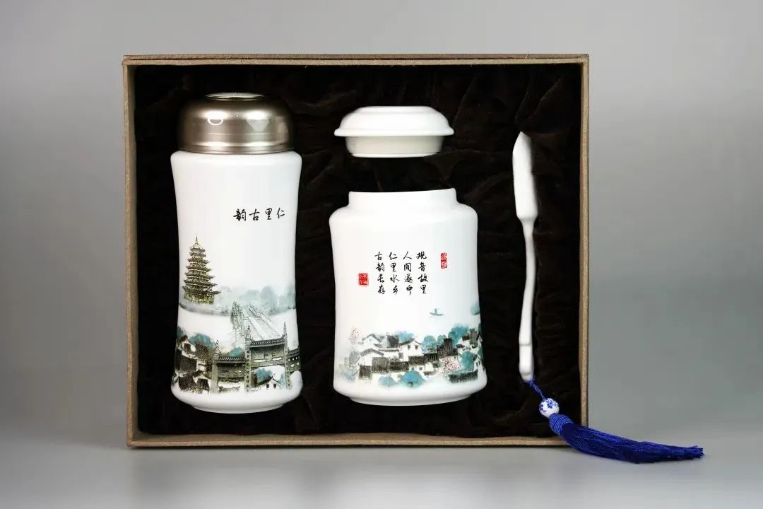 仁里古韵茶具以遂宁的“江南水乡”仁里古镇为蓝图水墨描绘,它青砖黛瓦,流水环绕,相守千百年,以这幅优美的画卷落凝在保温茶杯和茶叶罐上,品味浓厚的历史文化。