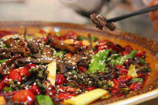 加入大把干辣椒去除腥味