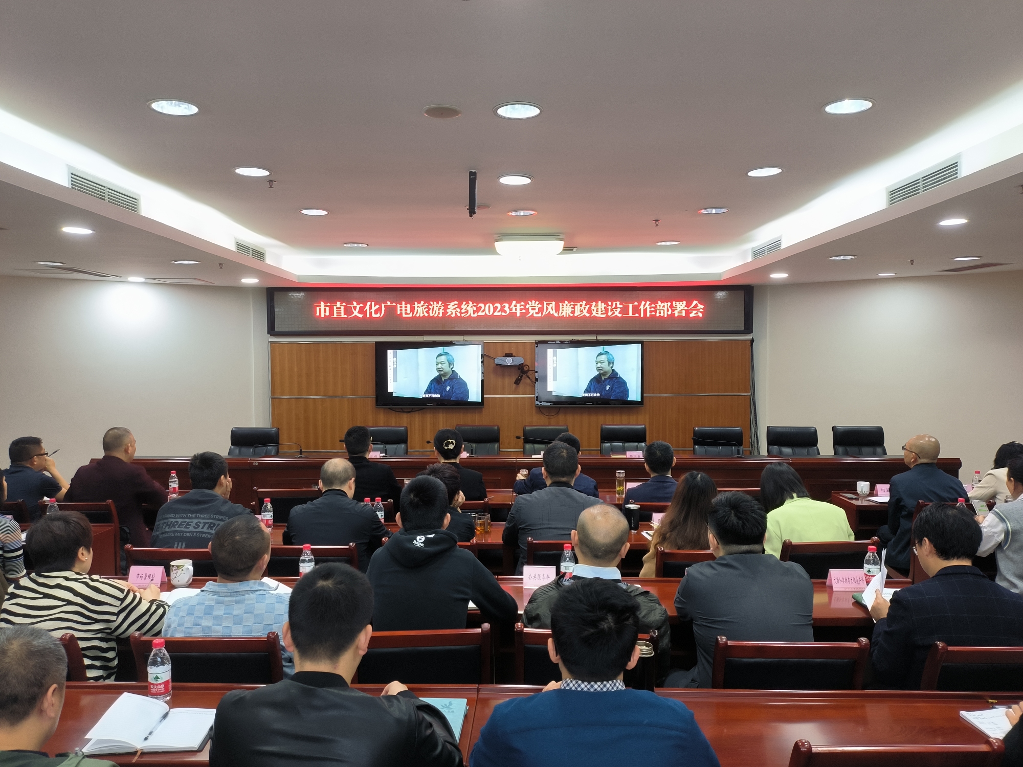 为进一步贯彻落实全面从严治党要求,深入推进党风廉政建设和反腐败工作,4月26日上午,市直文化广电旅游系统召开2023年党风廉政建设工作部署会。市委宣传部副部长,市文化广电旅游局党组书记、局长魏毅主持会议并讲话,驻市教体局纪检监察组组长刘坤玉到会指导,局在家领导班子成员出席会议,机关全体干部职工、局属各单位负责人参加会议。