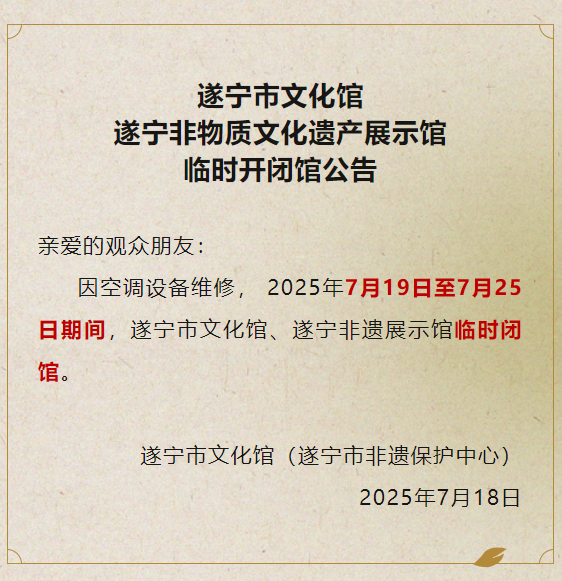 遂宁市文化馆 遂宁非物质文化遗产展示馆临时开闭馆公告