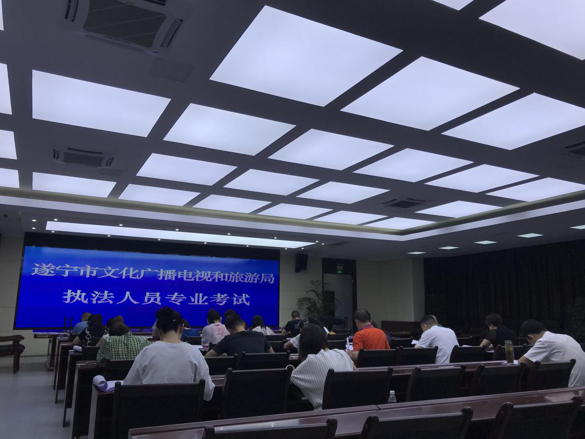 7月29日上午,遂宁市文化广播电视和旅游局会议室里气氛紧张,遂宁市文化市场综合行政执法人员坐在各自的位置上严阵以待,只听阵阵笔与纸摩擦的声音彻响于耳畔。