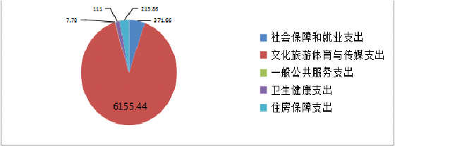 2024年度一般公共预算财政拨款支出6859.75万元,主要用于以下方面:一般公共服务支出7.78万元,占0.11%;教育支出0万元,占0%;科学技术支出0万元,占0%;文化旅游体育与传媒支出6155.44万元,占89.73%;社会保障和就业支出371.66万元,占5.42%;卫生健康支出111万元,占1.62%;住房保障支出213.86万元,占3.12%。(注:仅罗列本部门涉及的全部功能分类科目,至类级)