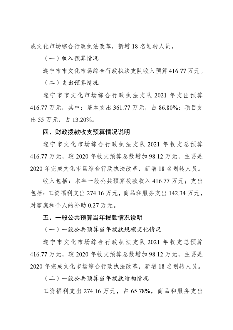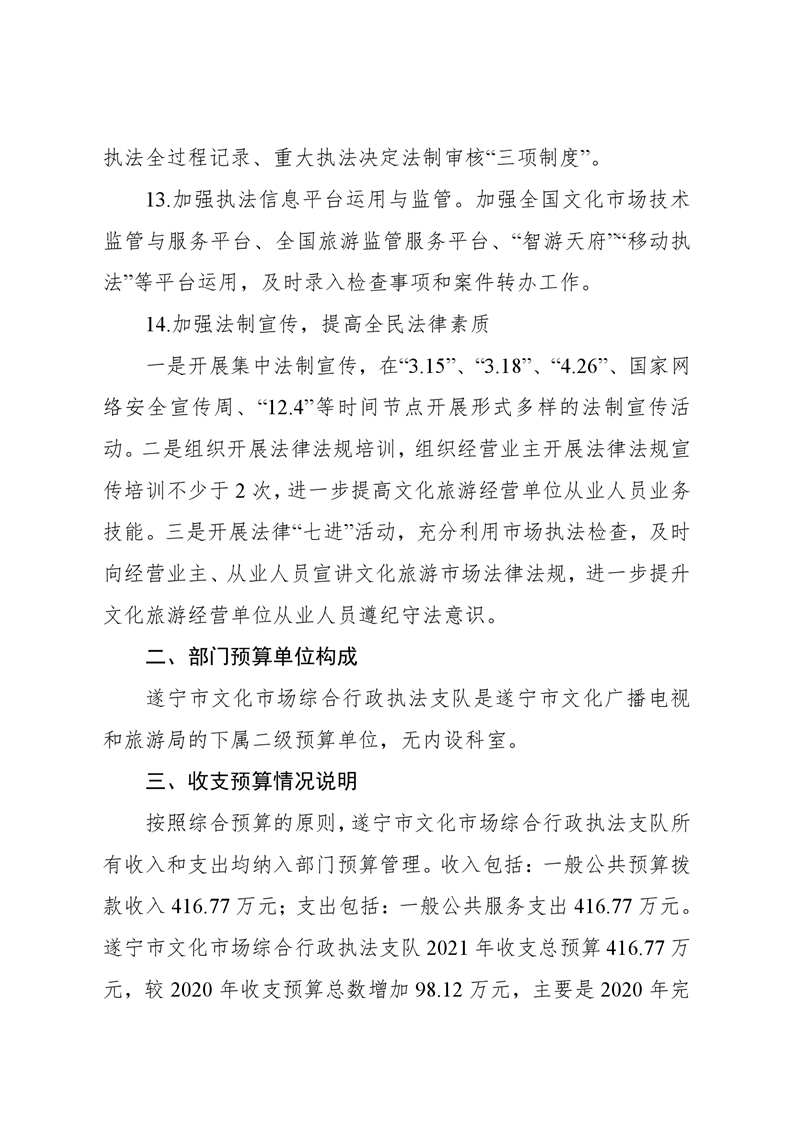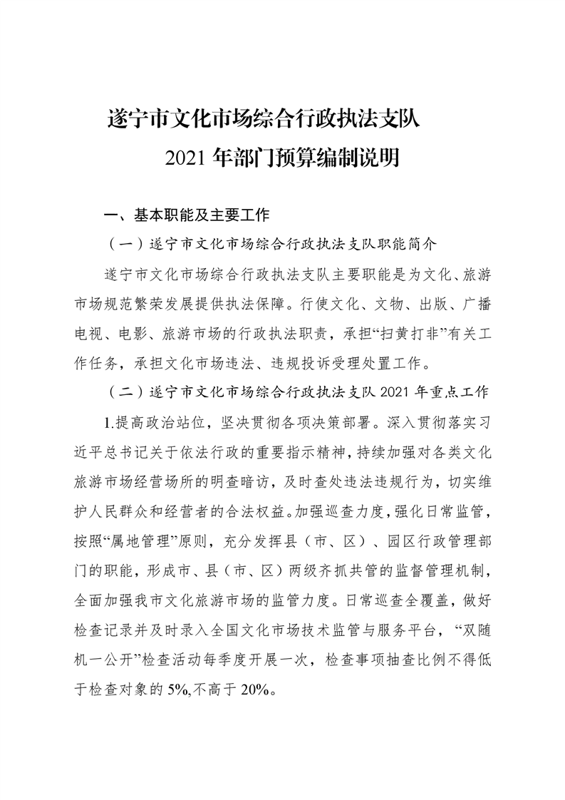 遂宁市文化市场综合行政执法支队2021年部门预算