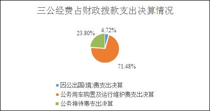 2016年度“三公”经费财政拨款支出决算中,因公出国(境)费支出决算3.70万元,占4.72%;公务用车购置及运行维护费支出决算55.93万元,占71.48%;公务接待费支出决算18.62万元,占23.80%。具体情况如下: