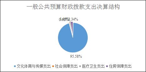 市文化广电新闻出版局及其下属单位2016年一般公共预算财政拨款支出4056.03万元,主要用于以下方面:一般公共服务支出0万元,占0%;文化体育与传媒支出3876.72万元,占95.58%;社会保障和就业支出25.22万元,占0.62%;医疗卫生支出59.28万元,占1.46%;住房保障支出94.80万元,占2.34%。(饼状图)