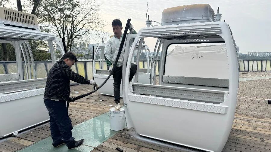 记者在施工现场看到,各项作业正有序推进。摩天轮原有箱体已全部拆除,工作人员系着安全绳在高空作业,对核心承重部件的钢丝绳进行细致检查与加固。此次升级维护聚焦安全与体验双提升,除了对老旧轿厢整体翻新、更换磨损的防腐木地板,还将对配套营业房进行全方位改造,全面优化服务环境,让设施焕发新活力。