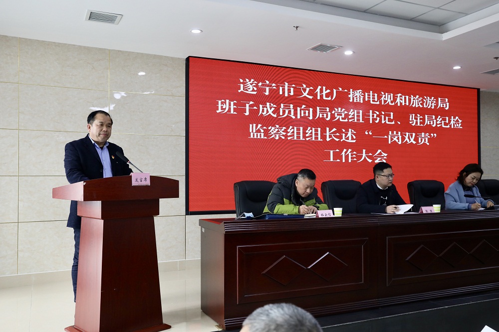 1月26日,2020年度遂宁市文化广电旅游局“勤廉大家评”述责述廉民主评议会议召开。会上,除局领导班子成员向局党组书记和驻局纪检组组长述党风廉政“一岗双责”外,17名机关内设科室和局直属单位主要负责人向驻局纪检监检组进行大会现场或书面述责述廉,重点从个人履职尽责、落实党风廉政建设“一岗双责”、廉洁从政等方面进行了汇报。同时,5名机关科室和局属单位负责人接受了市人大代表、市政协委员以及管理服务对象的提问质询。