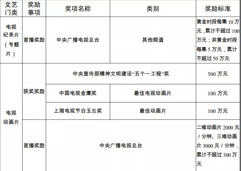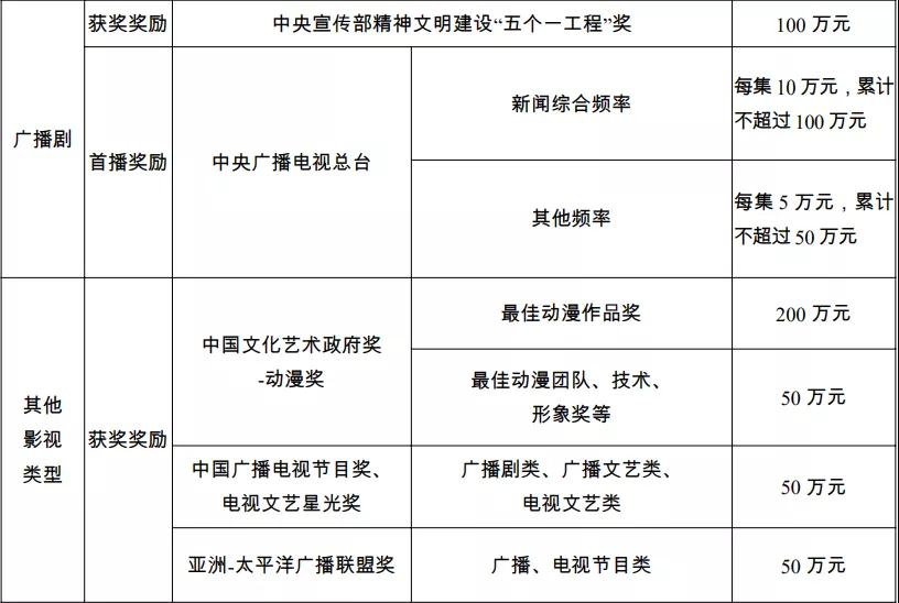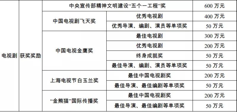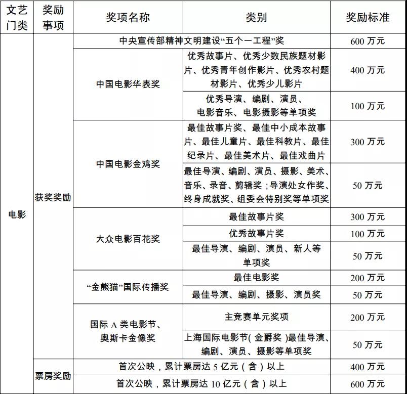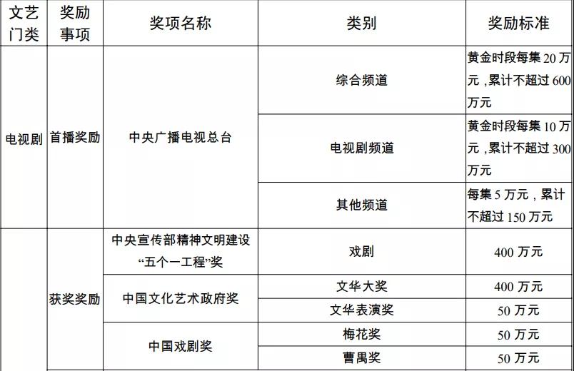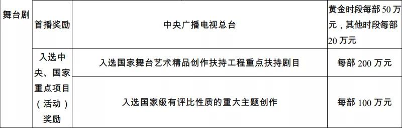 对电影、电视剧、舞台剧,按以下条件和标准予以奖励: