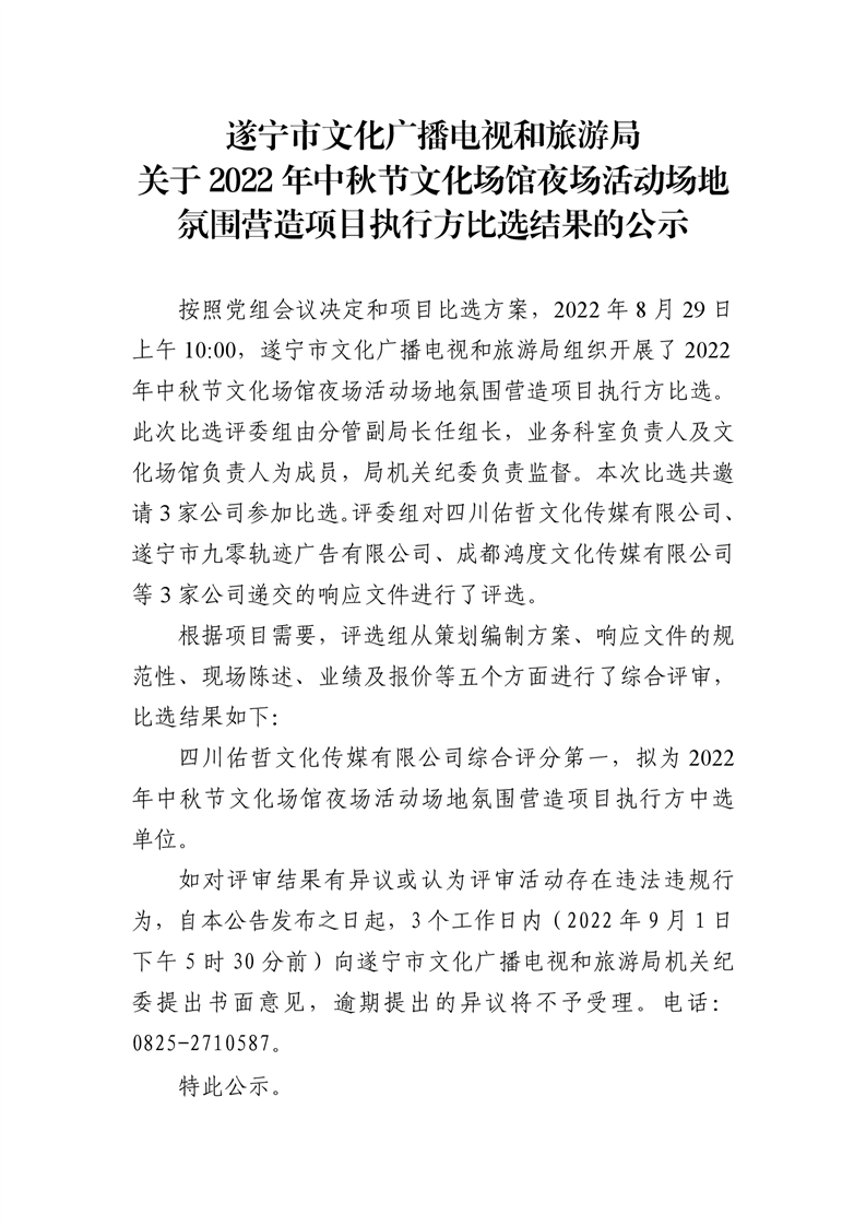 关于2022年中秋节文化场馆夜场活动场地氛围营造项目执行方比选结果的公示