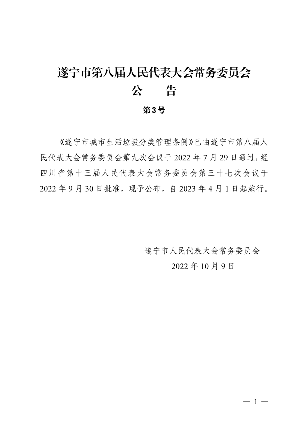 遂宁市第八届人民代表大会常务委员会公告(第3号)