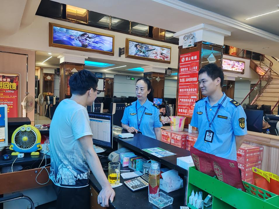 为营造风朗气清的文化环境,进一步做好未成年人保护工作,按照《全市娱乐、互联网上网服务等场所违规接纳未成年人集中整治工作方案》要求,遂宁市文化市场综合行政执法支队驻船山区大队深入辖区歌舞娱乐场所、网吧、密室逃脱、电竞酒店、校园周边、印刷厂等场所,开展未成年人保护宣传工作。