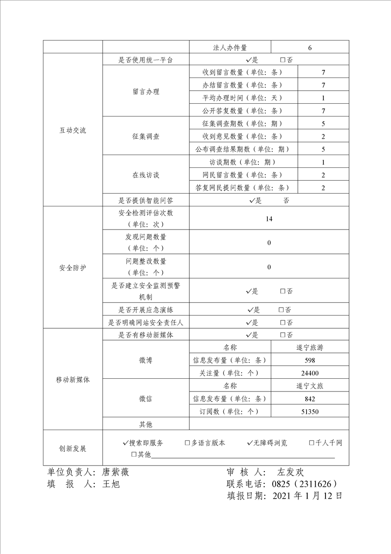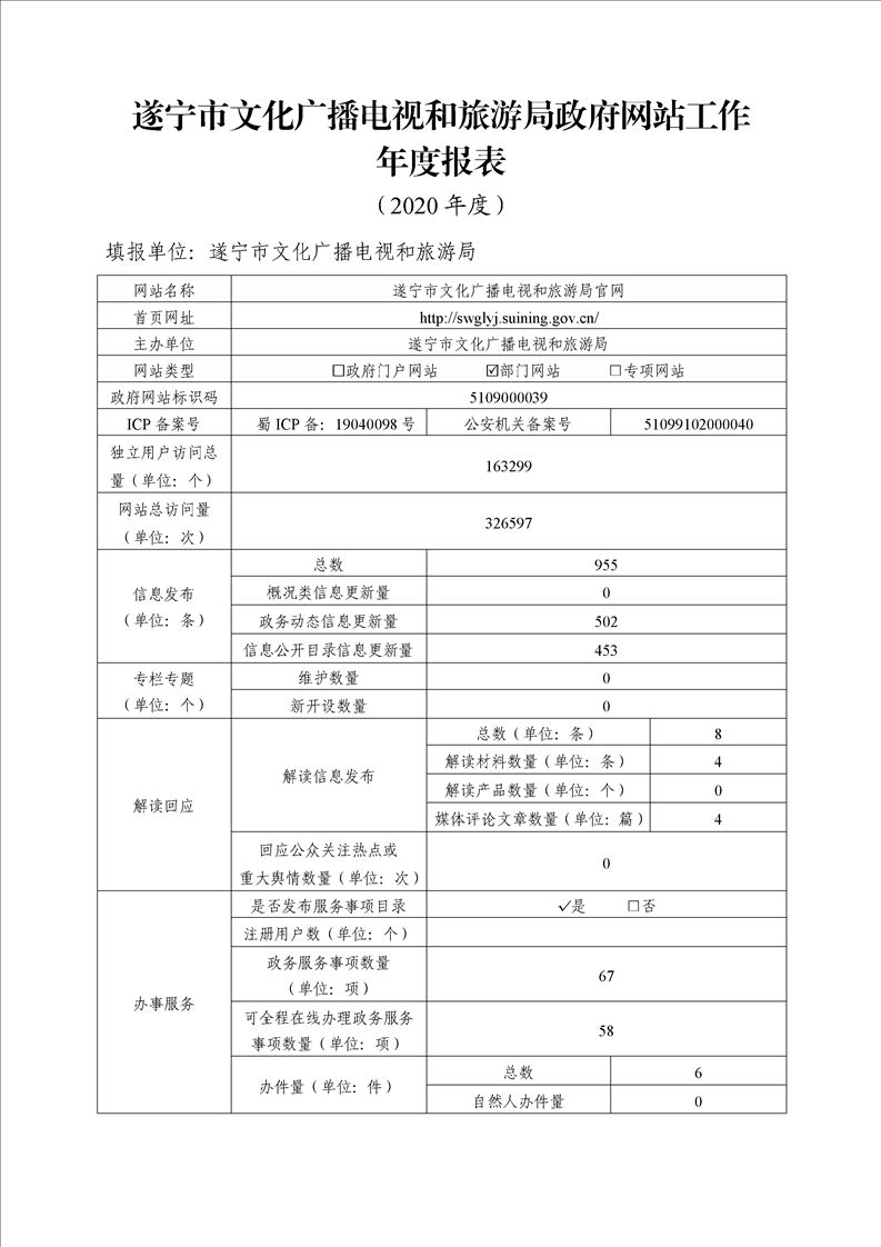遂宁市文化广播电视和旅游局政府网站工作年度报表(2020年度)