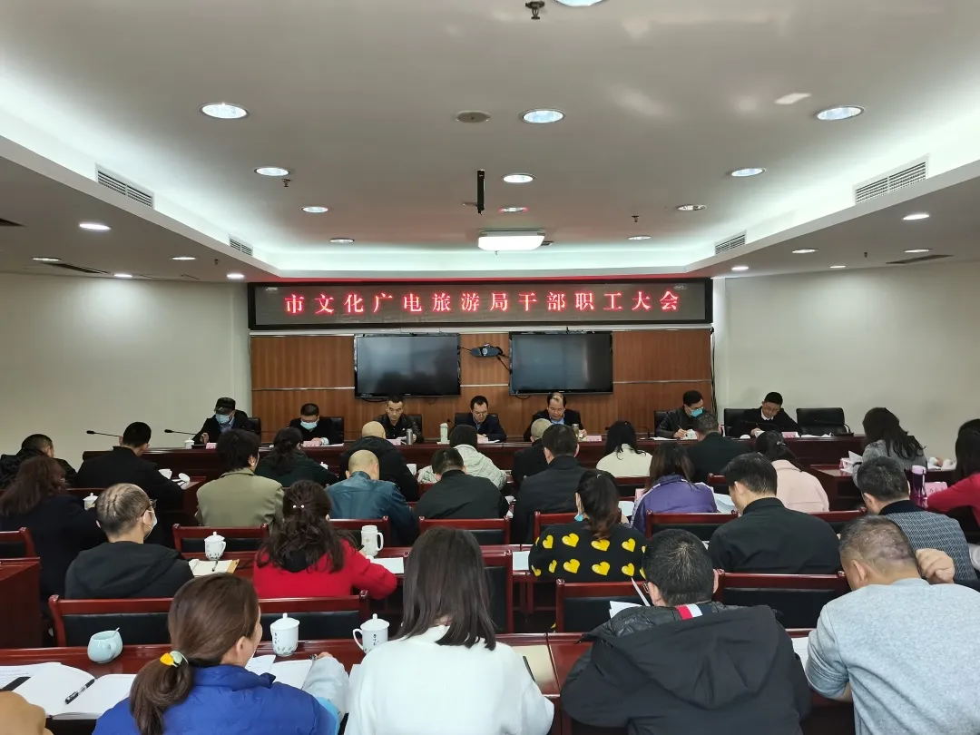 11月24日下午,遂宁市文化广播电视和旅游局组织召开市文化广电旅游局干部职工大会。市文化广电旅游局全体干部职工、局属单位班子成员、市川剧团、四川广电网络遂宁分公司、528发射台主要负责人参加会议。