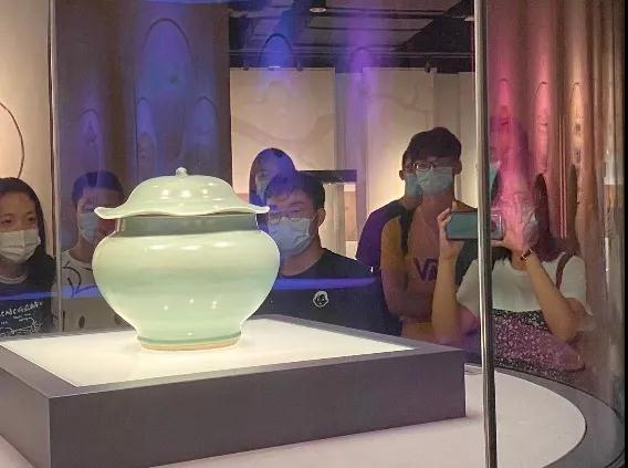 看过了充满未来感的城市发展规划,师生一行来到富有人文气息的宋瓷博物馆。整个建筑仿照宋瓷的温润特点而建,在正午的阳光下泛出玉色。宋瓷博物馆是遂宁市重点打造的旅游行业地标,荟萃了大量的精品、珍品、孤品,充分展现了宋瓷的神韵和风采,集中体现了宋代制瓷业的非凡艺术成就。缓步于昏黄的展厅中,沉睡千年的古器在冷光灯下依旧焕发着曾经的玉色。同学们流连于南宋龙泉窑青釉荷叶型盖罐、龙耳簋式炉、景德镇青白釉梅瓶、三足蟾形水盂等精品宋瓷之间,用心感受着遂宁这座古城深厚的文化底蕴。