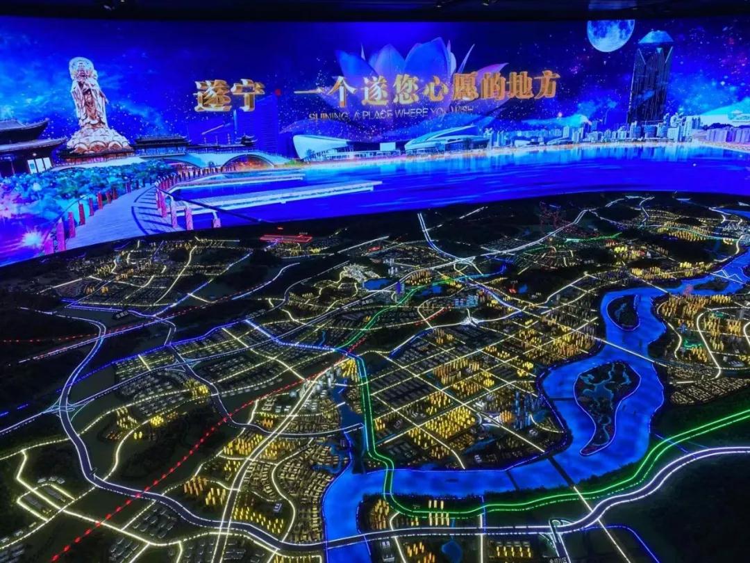座谈会后,课程团队来到遂宁市城市规划展览馆,俯瞰城市发展规划沙盘,仔细聆听关于遂宁市发展历史以及绿色可持续发展规划的讲解,对遂宁的城建脉络、建设成就以及规划蓝图得到了初步的认识,也感受到在“独特遂宁”、“宏图遂宁”和“幸福遂宁”的规划下遂宁市紧抓绿色发展建设的力度和温度。