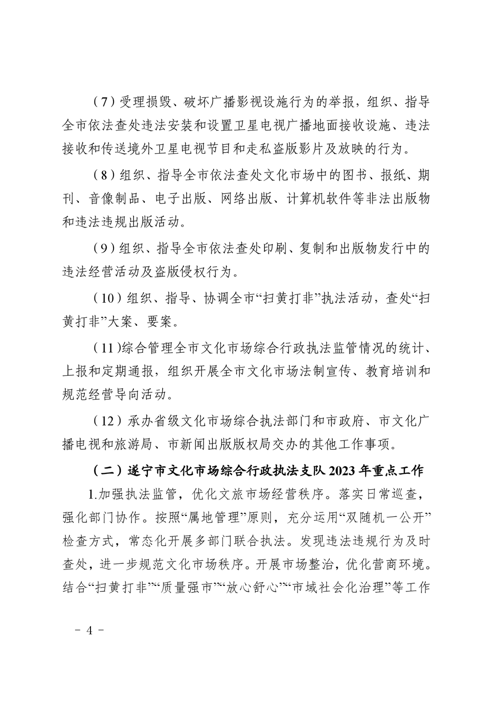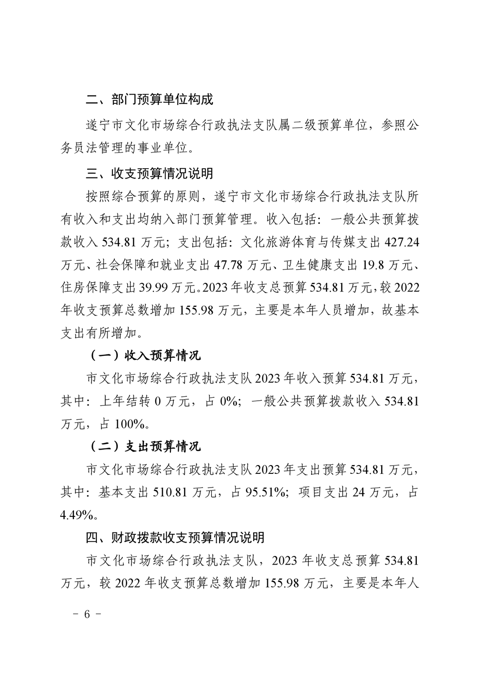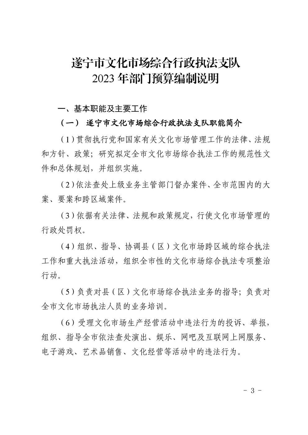 遂宁市文化市场综合行政执法支队2023年部门预算