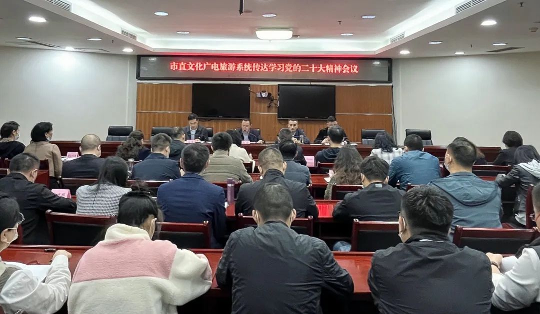 10月27日,遂宁市直文化广电旅游系统传达学习党的二十大精神会议召开。遂宁市委宣传部副部长,遂宁市文化广播电视和旅游局党组书记、局长魏毅同志传达了党的二十大精神以及省委、市委传达学习贯彻党的二十大精神大会有关精神,对我市文化广电旅游系统学习宣传贯彻工作作出部署。