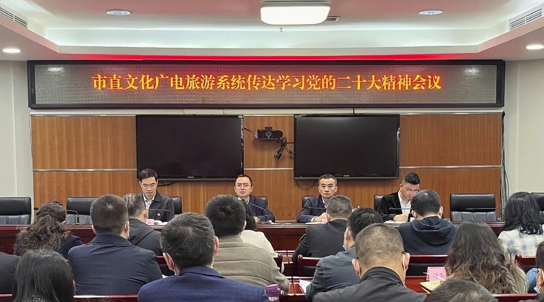 会议指出,党的二十大是在迈上全面建设社会主义现代化国家新征程,向第二个百年奋斗目标进军的关键时刻召开的一次十分重要的大会,认真学习贯彻落实党的二十大精神是当前和今后的一个时期全党的一项重大政治任务。全市文化广电旅游系统要紧紧围绕学习宣传贯彻党的二十大精神,精心组织、加强部署,推动全员系统学、突出重点学、结合实际学,充分发挥领导班子引领示范作用,带动系统各基层党组织以丰富的形式开展系列学习活动,迅速掀起全系统学习热潮,以更加奋发有为的精神忠实履行好新时代发展文广旅事业产业使命任务。